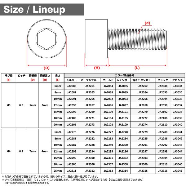 チタンボルト M4×15mm P0.7 ストレートキャップボルト スリムヘッド 六角穴付き シルバーカラー 1個 JA2299