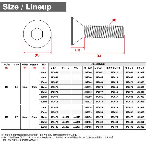 64チタン 六角穴付き皿ボルト