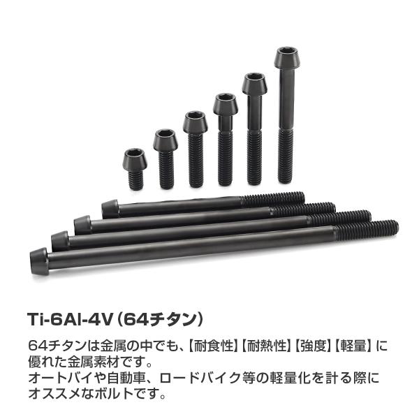 チタンボルト M6×10mm 1.0 テーパーヘッド 六角穴付き キャップボルト ブラック 1個 JA4117