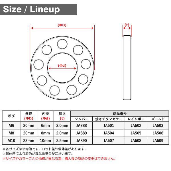 チタンワッシャー M6 外径20mm 内径6mm 平ワッシャー ホール加工 焼きチタンカラー 1個 JA501