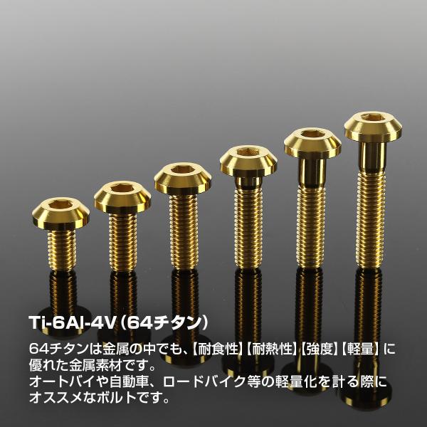 チタンボルト M8×30mm P1.25 テーパーヘッド 六角穴 ボタンボルト ゴールドカラー 1個 JA756