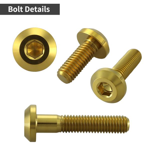 チタンボルト M8×40mm P1.25 テーパーヘッド 六角穴 ボタンボルト ゴールドカラー 1個 JA762