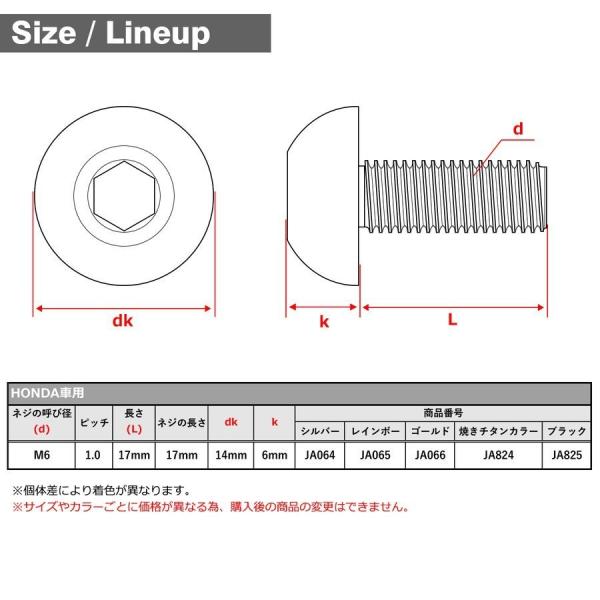 64チタン ブレーキディスク ローター ボルト M6×17mm P1.0 ホンダ車用 HONDA 焼きチタンカラー JA824