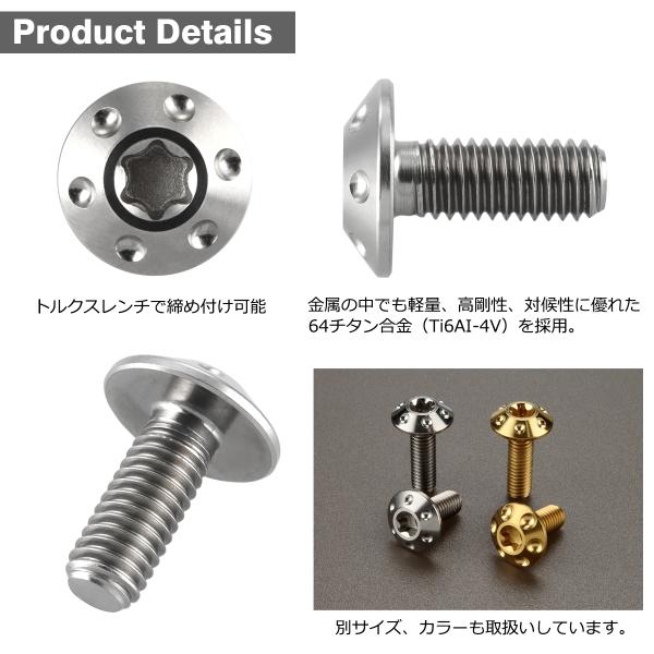 チタンボルト M6×15mm P1.0 ボタンボルト トルクス穴 ワイドフランジ シルバーカラー 1個 JA867