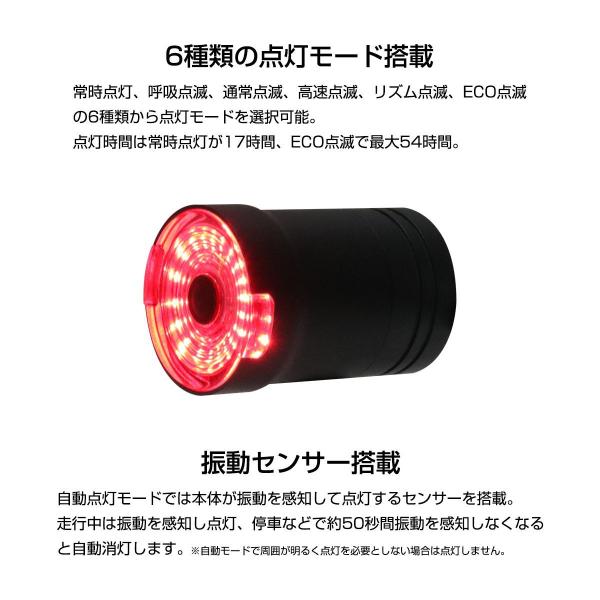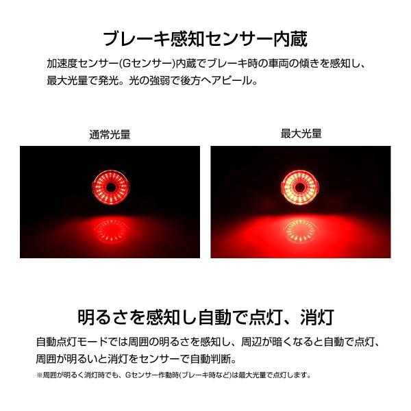 自動点灯モード・ブレーキ感知Gセンサー内蔵・振動センサー搭載・点灯モード6種類搭載。