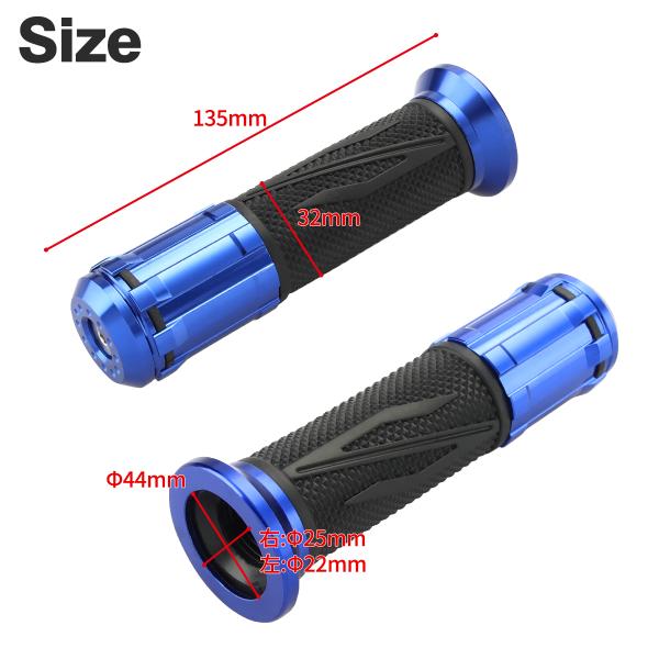 バイク グリップ 135mm 非貫通 グリップエンド 付属 左右セット 22.2mm ハンドル用