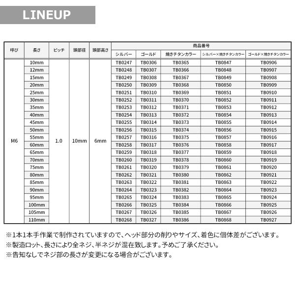 ステンレスボルト M6×60mm P1.0 テーパーシェルヘッド キャップボルト 焼きチタンカラー TB0376