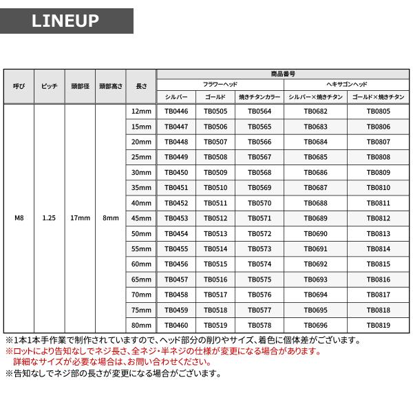 ステンレスボルト M8×20mm P1.25 六角ボルト フラワーヘッド キャップボルト シルバーカラー TB0448