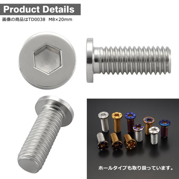 ブレーキディスク ローターボルト M8×20mm P1.25 ヤマハ用 ミニフラットヘッド ステンレス シルバーカラー TD0038