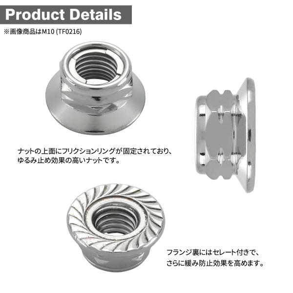 ステンレスナット M8 P1.25 ゆるみ止め ロックナット 六角ナット セレート付き シルバーカラー TF0213