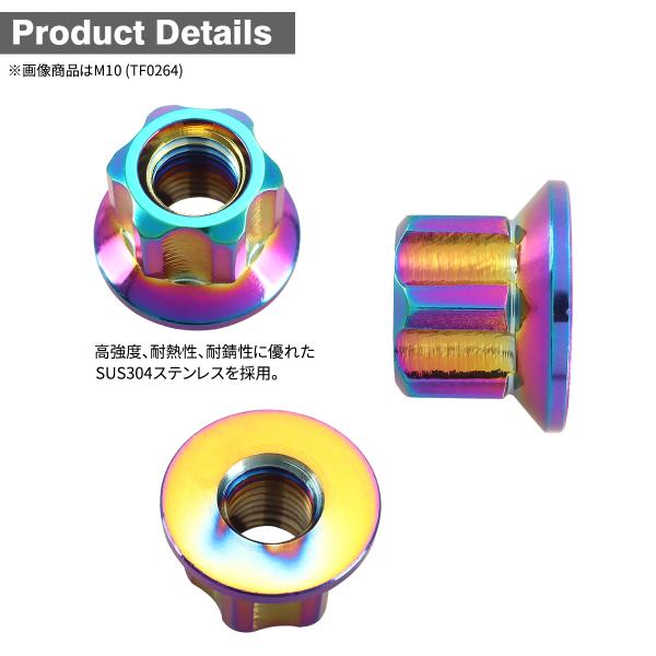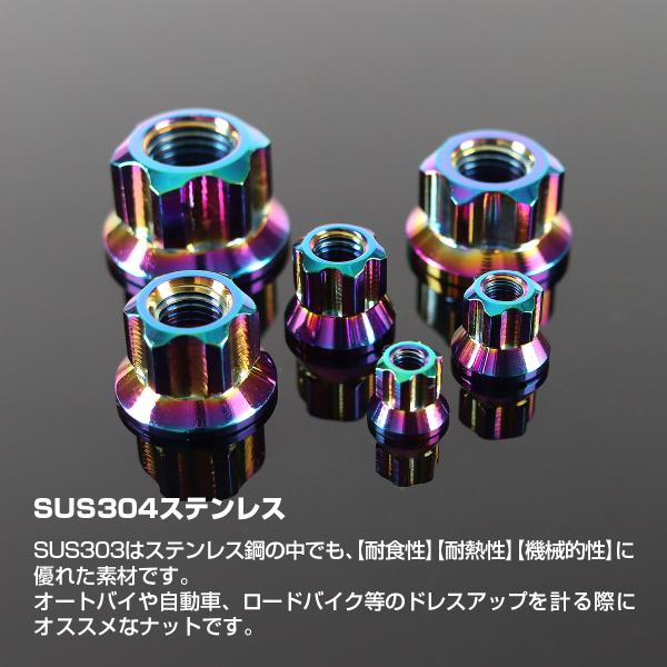 ステンレスナット M10 P1.25 六角ナット ロング貫通ナット デザインナット チタンカラー レインボー TF0264