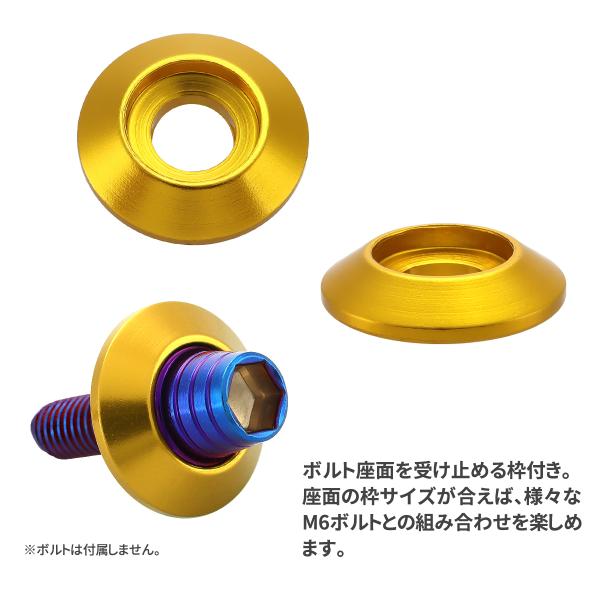 M6 デザイン ワッシャー 10枚セット アルミ製 外径18mm ゴールド TH0706-G