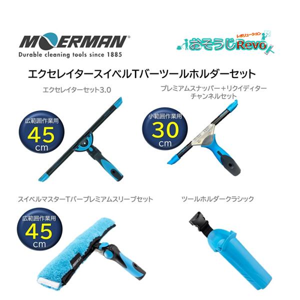 モアマン MOERMAN エクセレイターセット3.0 45cm・プレミアムスナッパー+リクイディターチャンネルセット 30cm・スイベルマスターTバープレミアムスリーブセット45cm ツールホルダークラシック ガラス清掃 ガラス清掃プロツール 究極のガラス清掃プロツール