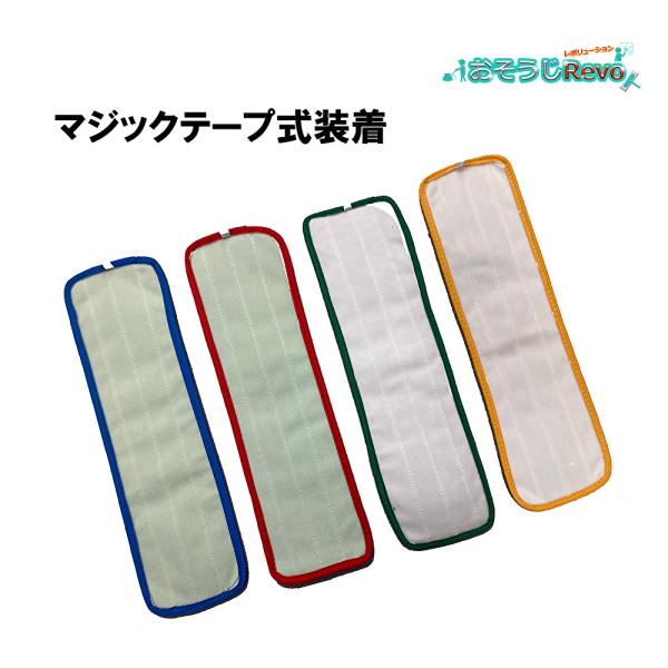 吸水性 吸塵性 耐久性が抜群な高品質マイクロファイバーフラットモップ。フチを4色(青フチ・赤フチ・黄フチ・緑フチ)に分ける事でゾーンニングが可能