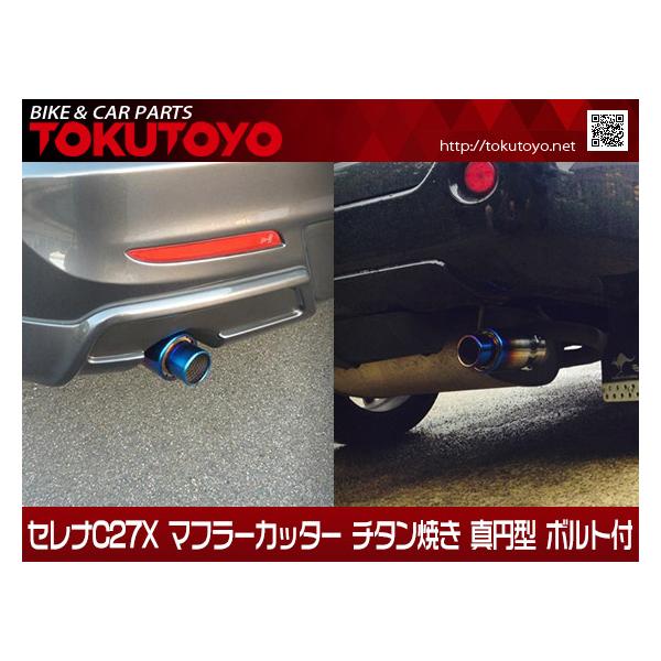 「脱落防止ワイヤー付き」日産 新型セレナC27X マフラーカッター チタン焼き 外装 カスタムパーツドレスアップ 真円型 約49mm~64mm適用