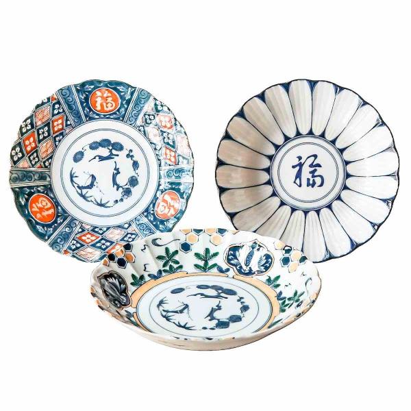 縁起のよい3種柄の深皿セット(3枚)です。