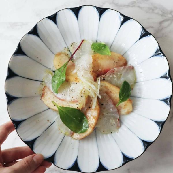 和食はもちろんのこと、パスタやマリネなど、洋食系もスマートにまとまり、 洋食器にはないオトナの雰囲気がただよう一皿に! 温故知新な器です。