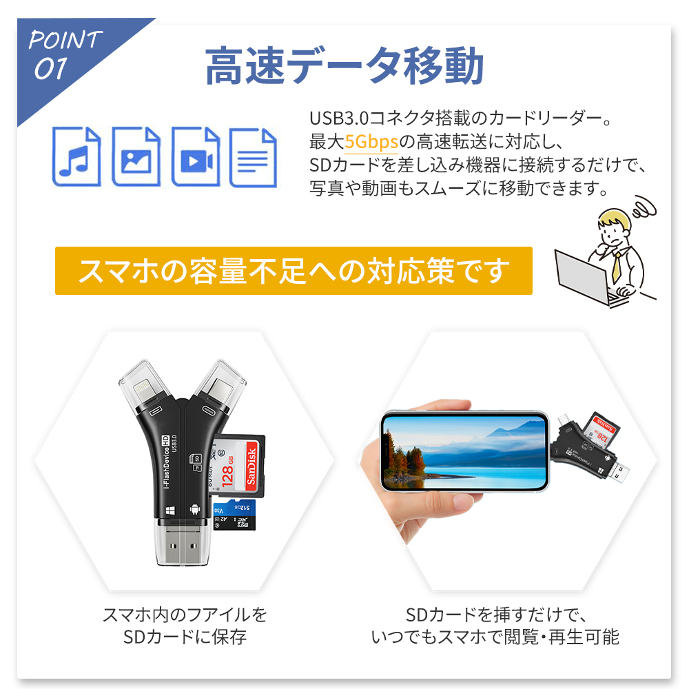 東京の夢ストア ★★★★★ 4.5(377件) 写真 動画 バックアップ データ移行 容量不足解消 74%OFF価格 送料無料 【1TB対応大容量】SDカードリーダー 4in1 iPhone17 対応 1TB USB USBメモリ 外付け高速 128GB 外付け スマホ データ転送 1TB 対応 データバックアップ 東京の夢ストア 人気ランキング もっと見る 東京の夢ストア 商品一覧 もっと見る