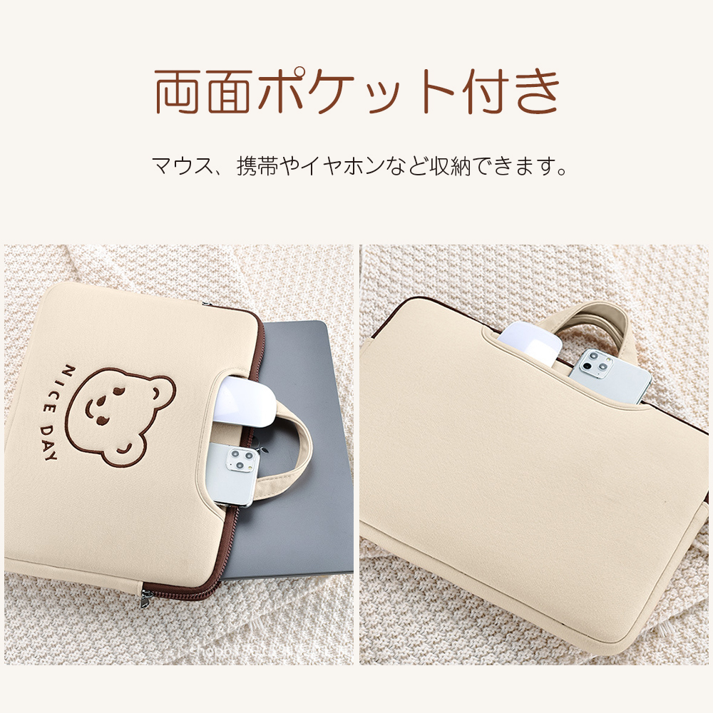 【人気7柄】ノートパソコンケース パソコンケース 2WAY仕様 刺繍 超軽量 防衝撃 防傷柔らかい 両面ポケット付き 韓国 可愛い ポイント利用