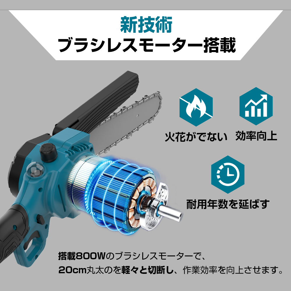 充電式 チェーンソー ハンディーソー 8インチ ハンディチェーンソー 充電式チェーンソー 電動ノコギリ 自動給油 電動チェーンソー