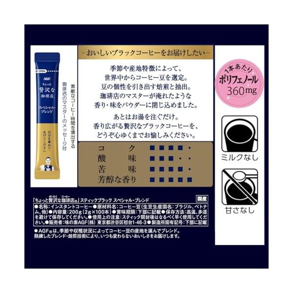 AGF(エージーエフ) ちょっと贅沢な珈琲店 スティックブラック スペシャルブレンド 100本 【 スティックコーヒー 】【 インスタントコーヒー 】