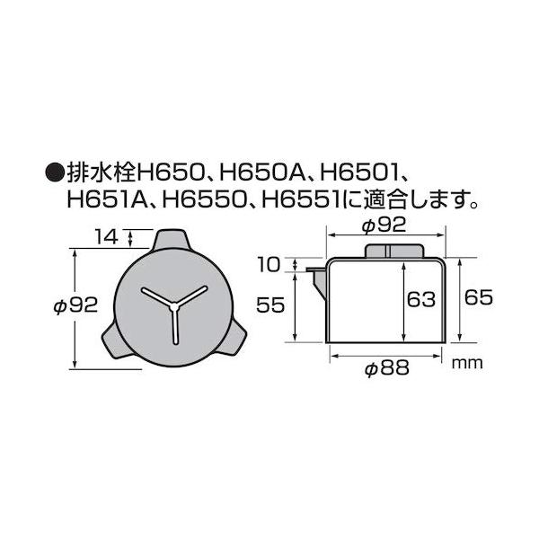 排水栓H650、H650A、H6501、H651A、H6550、H6551に適合します。