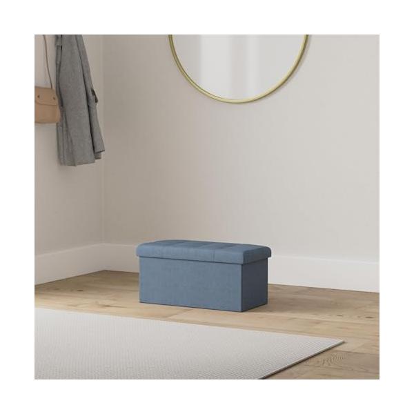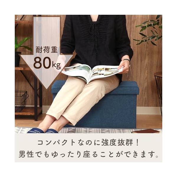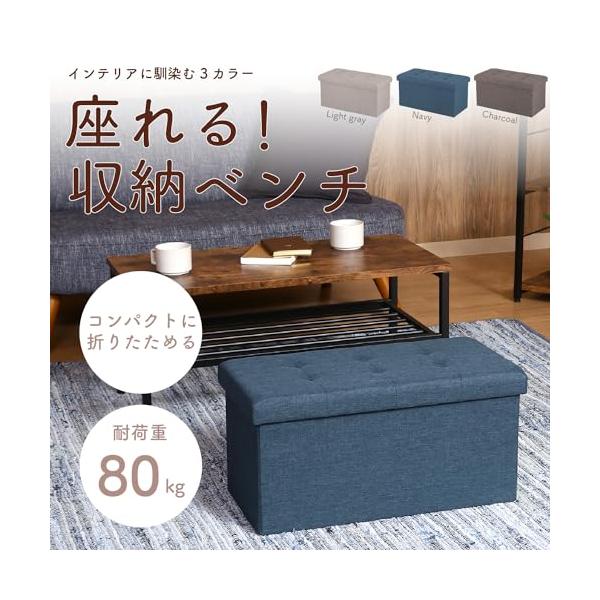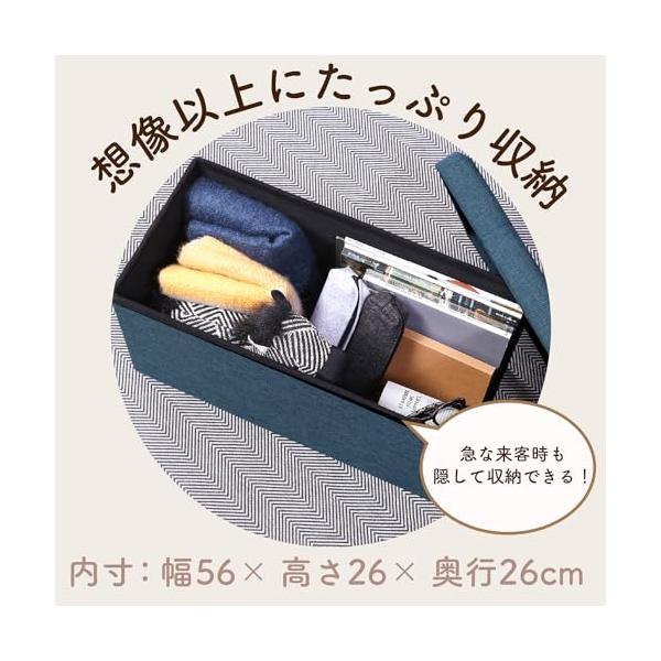 不二貿易(Fujiboeki) 収納ベンチ 収納ボックス 幅60×奥行30×高さ30cm ネイビー オットマン 耐荷重80kg 折りたたみ ボックススツール ハント 86141