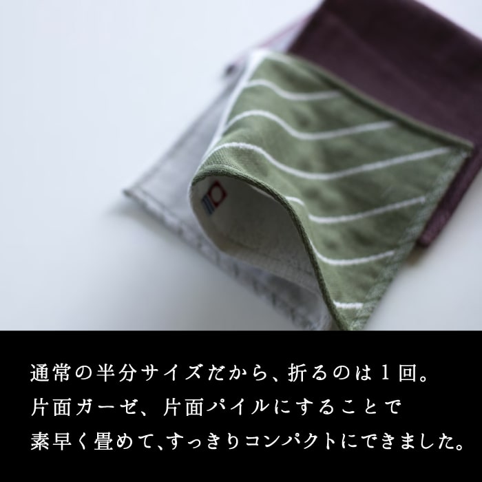 片面ガーゼ/片面パイル仕様は、両面パイルよりも薄く仕上がる特長があります。