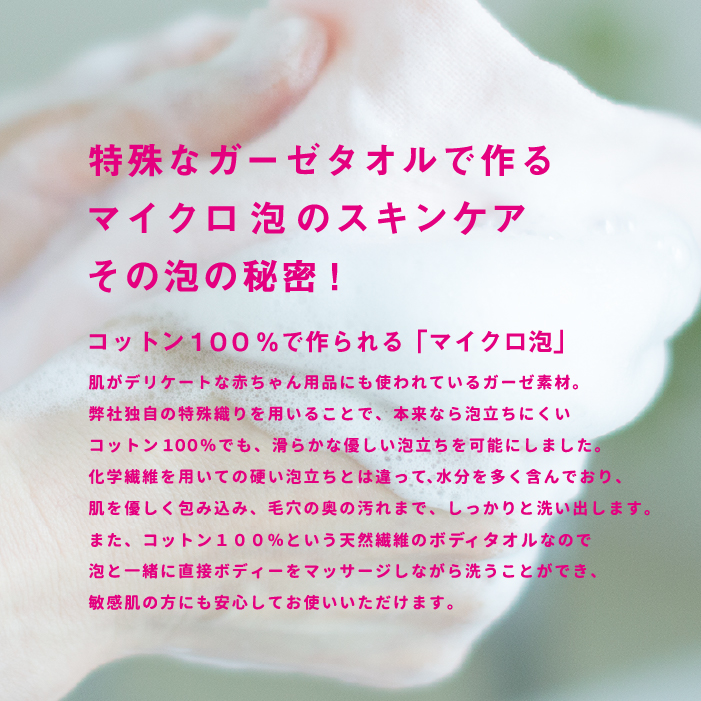 まるで手洗いのようにやさしく洗える ボディタオル 綿100%