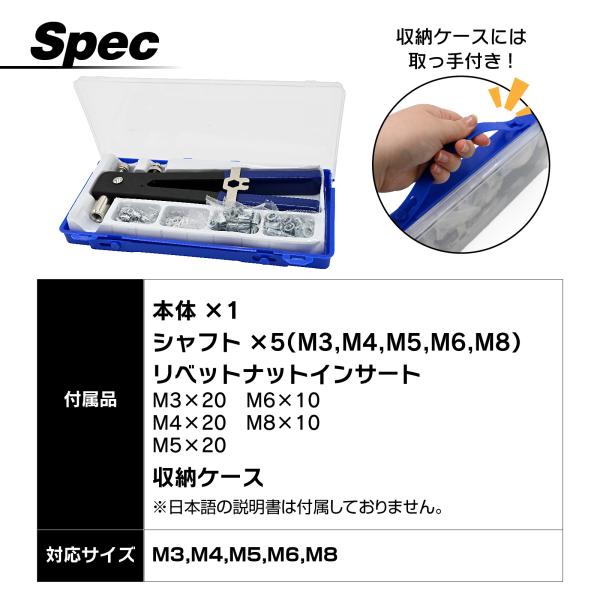 ハンドリベッターセット 86セット M3/M4/M5/M6/M8 ネジ付き ナッター ハンドリベッター リベッター ブラインドリベットナット