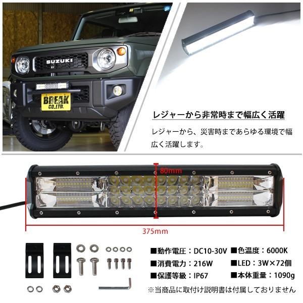 LED ライトバー 38cm 216W ワークライト 26000lm 12V 24V 作業灯 ハイパーコンボ 15インチ 補助灯 オフロード 防水 汎用 フォークリフト SUV ATV バギー 船舶