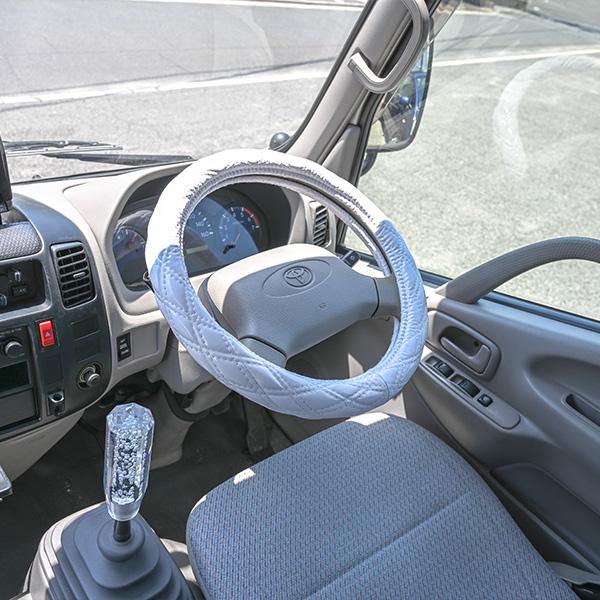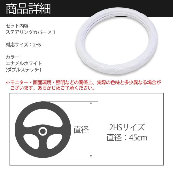 ステアリングカバー ハンドルカバー 2HSサイズ 45cm ホワイト エナメル ダブルステッチ カスタムパーツ スーパーグレート グランドプロフィア ギガ