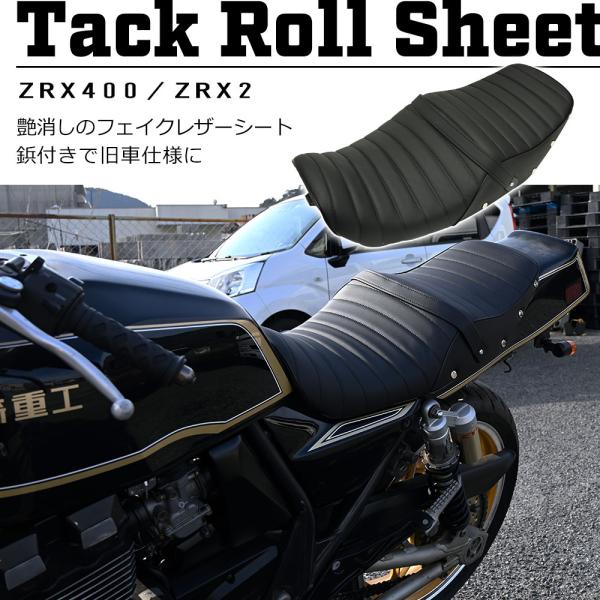 ZRX400 タックロール シート 黒 ZR400E 旧車 カスタム オリジナル 鋲付き あんこ抜き ローダウン アンコ抜き ブラック タックロールシート フェイク