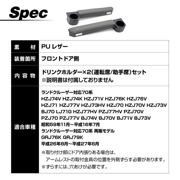 ランドクルーザー 70 75 76 78 79 再販 ドリンクホルダー カップホルダー アームレスト マグネット固定 ドア側 増設 ランクル 内装 パーツ レザータイプ
