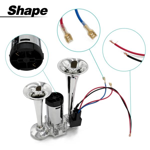 エアホーンは、高品質のクロムメッキ亜鉛材料で作られており、耐久性と長寿命を確保します。