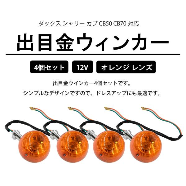 ダックス シャリー カブ CB50 CB70 対応 ウィンカー 出目金ウィンカー デメキン オレンジ レンズ 4個セット バイク カスタム パーツ シンプル