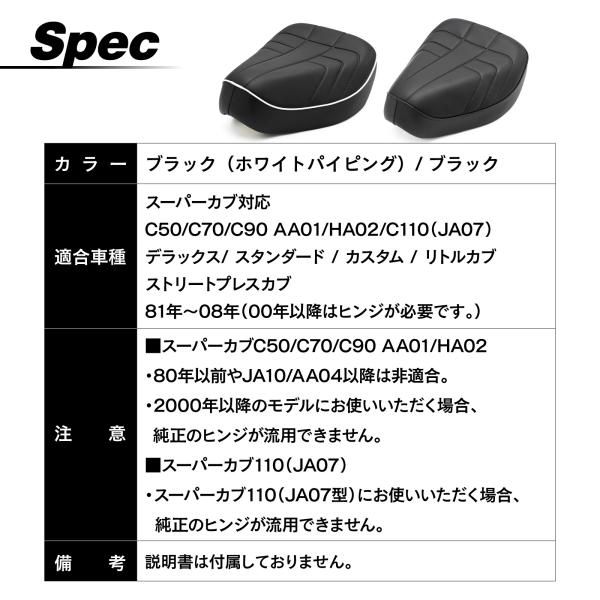 スーパーカブ リトルカブ 50 90 110 70C50 C70 C90 C110 JA07 DX STD シート ブラック ホワイトバイピング 外装 パーツ 社外品 レトロ 旧車風