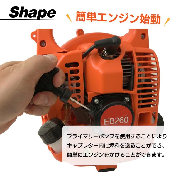 エンジンブロワー EB260|25.4cc 2ストローク 手持ち型ハンディブロアー 小型送風機 落ち葉集め 洗車 除雪に最適
