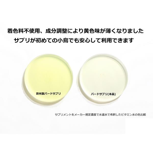 湿気に強く、水に溶かしても黄色くなりにくく、デリケートな小鳥にも使いやすい