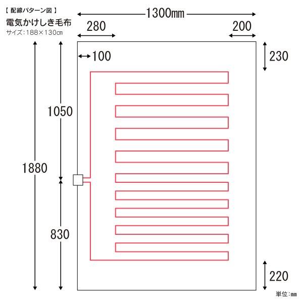 コード長 : 電源側 約1.9m 毛布側約1.2m