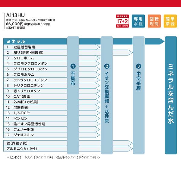 A113HU 三菱ケミカル 三菱レイヨン クリンスイ A103ZC A103HUの後継機種 アンダーシンクタイプ専用水栓 cleansui 本体セット(浄水カートリッジHUC17021付)