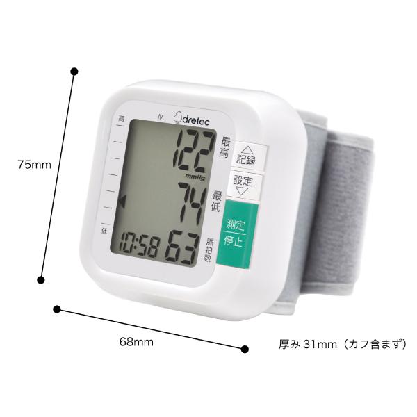 ドリテック 血圧計 手首式 メモリ60回分 動検知機能 脈検知機能 コンパクト シンプル 簡単操作 DRETEC デジタル自動血圧計 ホワイト色 BM-110WT