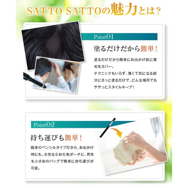 人目が気になって仕方ない無毛、薄毛部分をサットサットはスポンジタイプのペン先で茶色にぼかしながら自然に隠します。