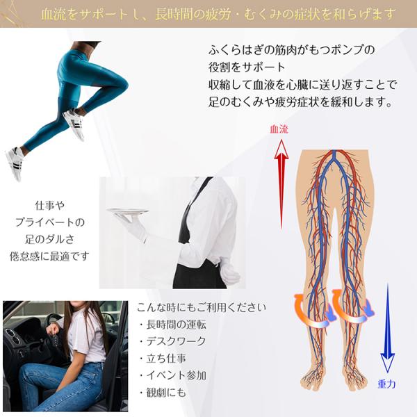 ふくらはぎの筋肉が持つポンプの役割をサポート。血液を心臓に送り返し、マッサージ効果によりこむら返り・夜間頻尿対策にも。
