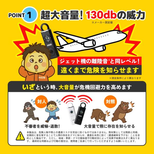 防犯ブザー アラーム ベル HID屋 大音量 130db 小学生 子供 大人 ランドセル LEDライトつき USB充電式 ブラック ホワイト