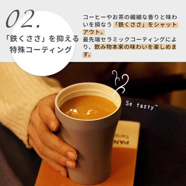 金属臭のない、淹れたての一杯をどこへでも。蓋付きタンブラー