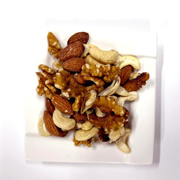 割れカシューナッツと割れアーモンド、くるみの3種ミックスナッツです