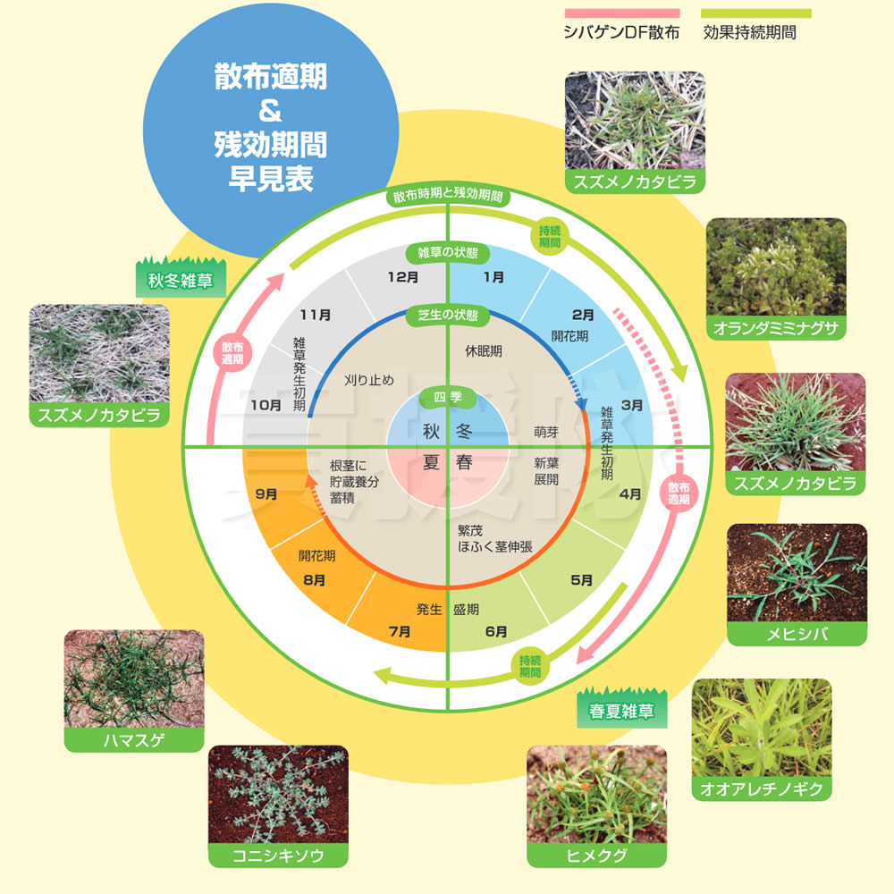 【芝生 芝 シバ 日本芝 西洋芝 バーミュダグラス 芝生用除草剤 除草 雑草 対策 イネ科 カヤツクリグサ 広葉 一年草 多年生雑草 樹木 庭 公園 緑地 駐車場 宅地 スズメのヒエ ハマスゲ ヒメクグ センチピードグラス 一年生雑草 多年生広葉雑草 スズメノカタビラ オランダミミナグサ メヒシバ オオアレチノギク 雌日芝 雀の帷子 大荒地野菊 小錦草 莎 春夏雑草 秋冬雑草 ゴルフ場 芝用 茎葉処理 土壌処理 堤とう 鉄道 コウライシバ ノシバ 野芝 高麗芝】