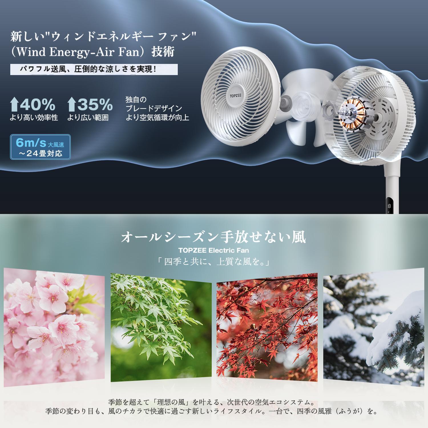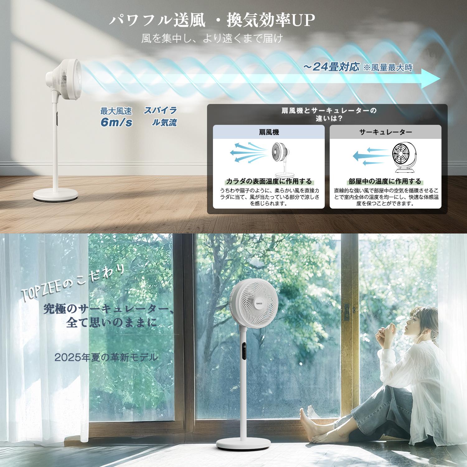 パワフルなモーターヘッド構造で、1430RPMの超高速回転と最大風速6m/sのスパイラル気流によって、24畳まで対応します。