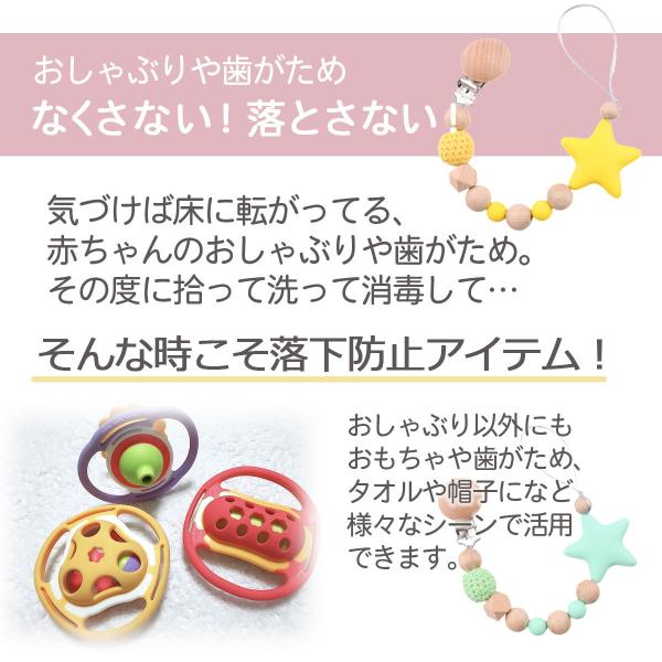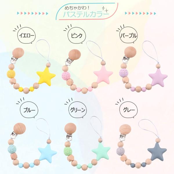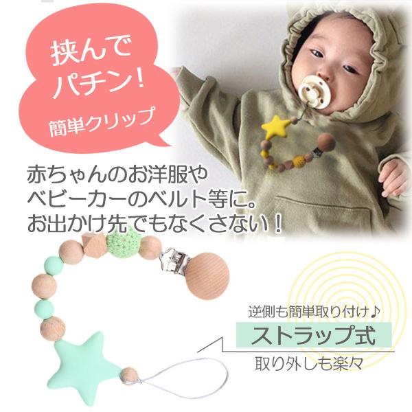 おしゃぶりホルダー 歯固めホルダー クリップ ストラップ ベビー 赤ちゃん おもちゃホルダー シリコン 木製 落下防止 便利グッズ 出産祝い 名入れ スター